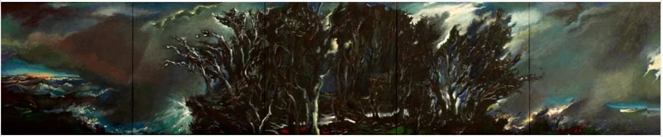 About the work: The immense power of nature is the subject of this painting,' said Gordon Rintoul in 2008, 'where nature is interacting only with itself. Mankind is powerless to intervene. The work is not a rendition of perfect beauty, nor joyful abundance. Instead, it intends to show images of slow change over vast periods of time. I hope the viewer can share the mood of awe and perhaps be briefly transported.’